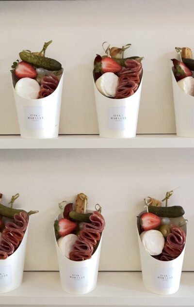 Savour convenience and elegance with our classic charcuterie cups. Each handheld cup is thoughtfully assembled with an assortment of premium cheese, artisanal breadsticks, cured meats, fresh fruit, pickles, olives & nuts. Ideal for single servings, our charcuterie cups are perfect for pop-by style events and open houses.